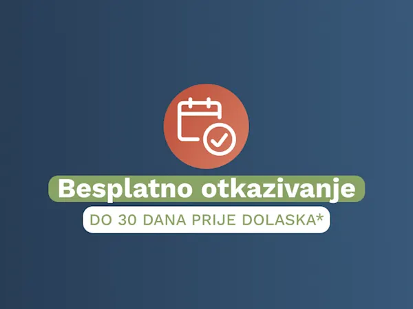 Besplatno otkazivanje do 30 dana prije dolaska posebna je ponuda koja vrijedi za sve smještajne jedinice označene oznakom „30 dana besplatnog otkazivanja” u trenutku rezervacije. Ponuda vrijedi za rezervacije napravljene za te smještajne jedinice između 1. i 30. studenoga 2025. godine za dolaske tijekom 2026. godine, uključujući i 31. prosinca 2026. Svako otkazivanje rezervacije pod ovom posebnom ponudom treba se obaviti putem stranice MyBooking. Svako otkazivanje nakon isteka roka od 30 dana provodi se u skladu s Uvjetima iznajmljivanja.